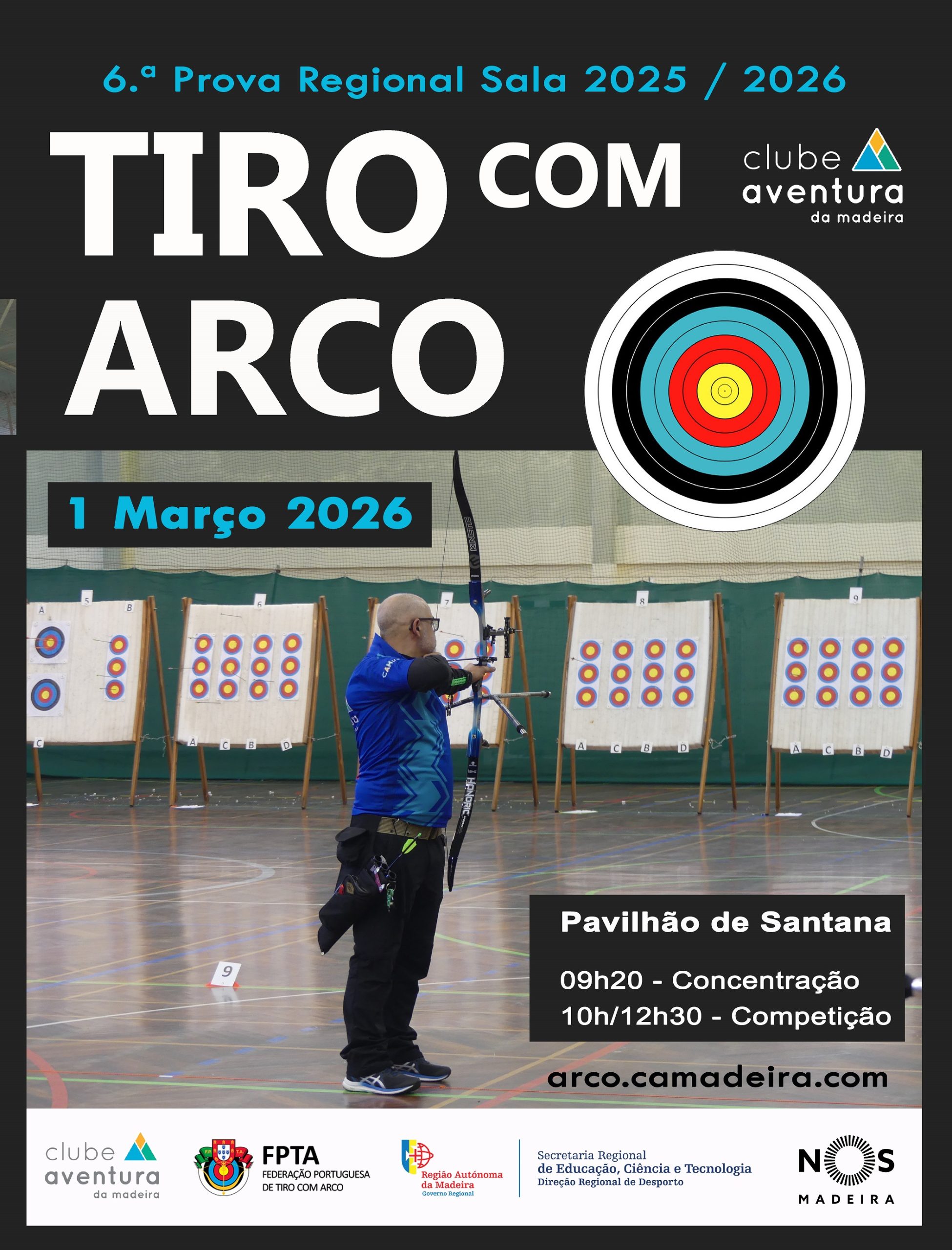 O Clube Aventura da Madeira está a organizar a 6.ª prova regional de Tiro com Arco em Sala, agendada para o dia 1 de março de 2026. A prova está prevista decorrer no pavilhão de Santana (Informação a confirmar).