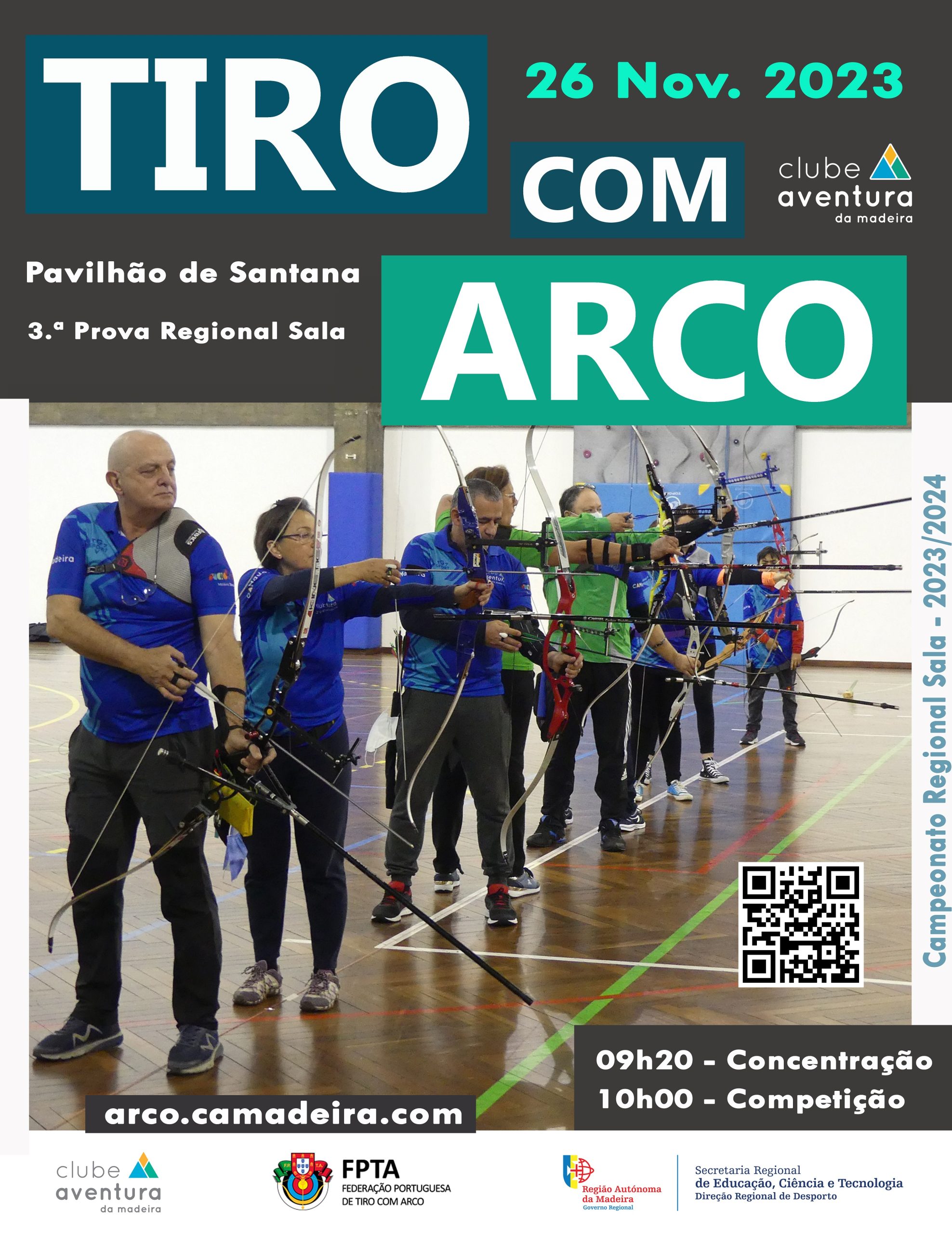 O Clube Aventura da Madeira está a organizar a 3.ª Prova da Competição Regional de Tiro com Arco em Sala, na divisão de arco recurvo. A prova está prevista para o pavilhão desportivo de Santana, no dia 26 de novembro de 2023.